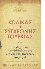 Σημαντική μελέτη για τους μηχανισμούς εξόντωσης των μειονοτήτων και τις εθνικές εκκαθαρίσεις στην Οθωμανική Αυτοκρατορία από τους Νεότουρκους αποτελεί το βιβλίο του Φουάτ Ντουντάρ Ο Κώδικας της Σύγχρονης Τουρκίας – Η μηχανική των εθνοτήτων της «Ένωσης και Προόδου» 1913-1918, που παρουσιάστηκε τη Δευτέρα 24 Νοεμβρίου στο Πνευματικό Κέντρο Κωνσταντινουπολιτών στην Αθήνα.