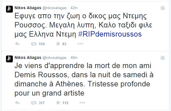 Την ανακοίνωση του θανάτου του έκανε ένας καλός του φίλος, ο Νίκος Αλιάγας, μέσω twitter.