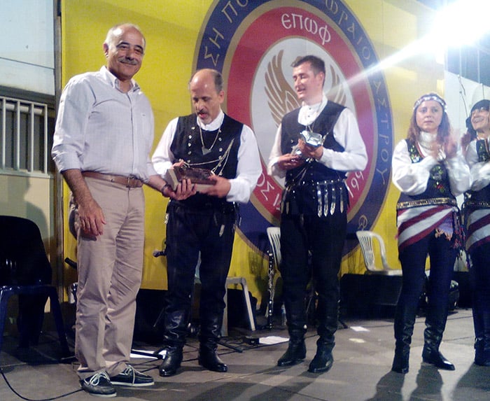 Στο πλαίσιο της σαββατιάτικης εκδήλωσης ο Ηρ. Τσακαλίδης τίμησε με πλακέτα τον Τούρκο χορογράφο Ασλάν Σεζέρ και εκείνος του δώρισε ένα αγαλματίδιο με τον Πόντιο Ακρίτα.