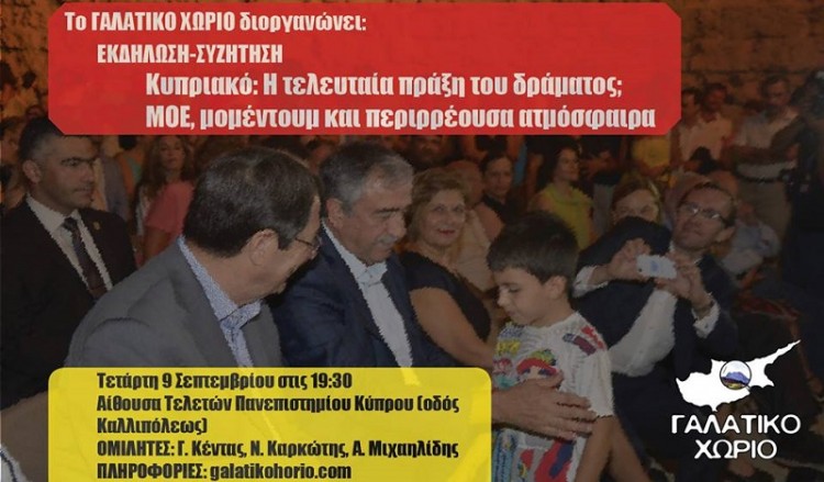 Στα πλαίσια μιας ευρύτερης κινητοποίησης για το Κυπριακό ζήτημα, η διαδικτυακή ομάδα Γαλατικό Χωριό πραγματοποιεί μια σειρά εκδηλώσεων, ξεκινώντας από την Τετάρτη 9 Σεπτεμβρίου, στις 19:30, στην αίθουσα τελετών του Πανεπιστημίου Κύπρου (Καλλιπόλεως).