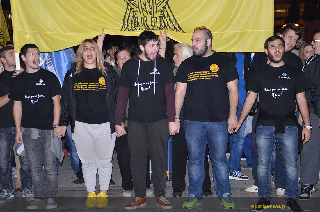 Слова клятвы известного греческого политика и уроженца Понта Леонидаса Ясонидиса: «Пусть высохнет наше горло, если мы забудем отеческую Понтийскую землю!», произнесенные благодарными потомками на площади Синтагма в Афинах 5 ноября, вызвали бурю эмоций у собравшихся на митинг понтийских греков. Греческий актер и ревностный понтийский патриот Лазос Терзас громогласно произнес священное высказывание на древнегреческом языке и обратился к министру Образования Греции Никосу Филису, отрицающему геноцид, лишивший жизней 353.000 греков Понта.