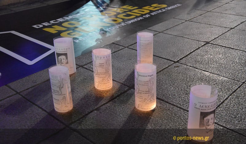Με αναμμένα κεριά και σύνθημα «9 Δεκεμβρίου, όχι άλλες Γενοκτονίες» απόγονοι των χριστιανών της Ανατολής, οι πρόγονοι των οποίων ήταν θύματα γενοκτονίας, μαζεύτηκαν στο Σύνταγμα, στο πλαίσιο της Παγκόσμιας Ημέρας κατά των Γενοκτονιών, για να στείλουν το μήνυμα ότι το φως νικάει το σκοτάδι.
