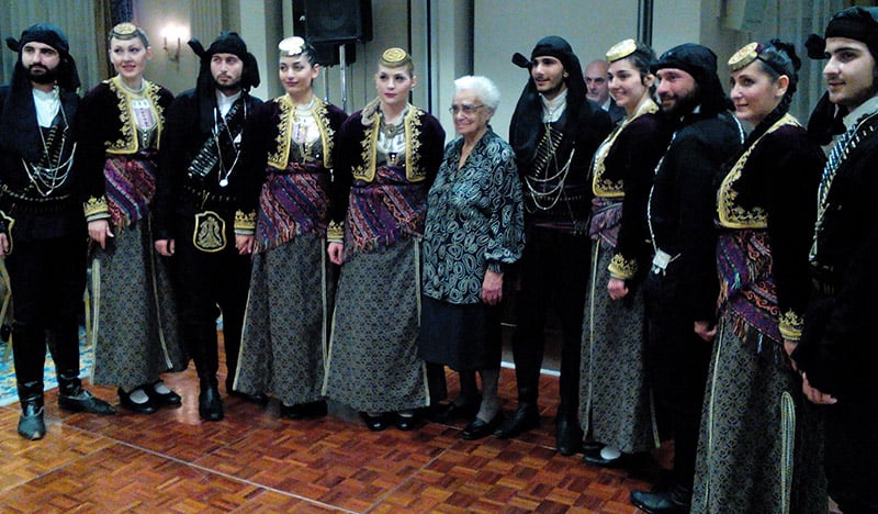 Η Άννα Θεοφυλάκτου ανάμεσα σε μέλη του χορευτικού της Ευξείνου Λέσχης Θεσσαλονίκης