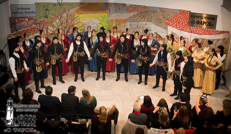Το δοξάρι της κεμεντζέ του Δημήτρη Τσούλφα, το τραγούδι του Σταύρου Σαββίδη και το νταούλι του Σάββα Ηλιάδη συνόδεψαν τους 120 χορευτές που χόρεψαν με έντονη διάθεση τους λεβέντικους χορούς του Πόντου και παρουσίασαν έθιμα της Πρωτοχρονιάς. Κατά την είσοδό τους κέρασαν τσίπουρο και ποντιακές λιχουδιές τους καλεσμένους.