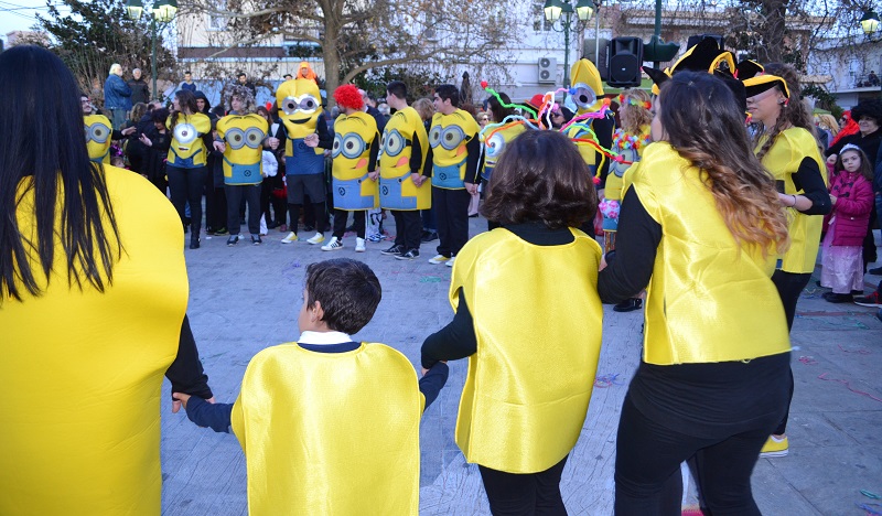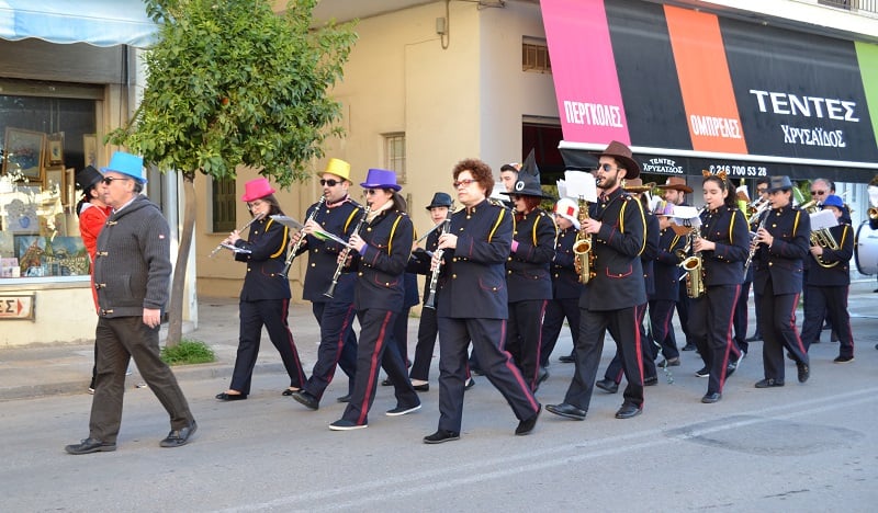 Αποκριάτικο ρυθμό έδινε η Φιλαρμονική του Δήμου, ενώ πλήθος κόσμου έβγαινε στα μπαλκόνια για να παρακολουθήσει.