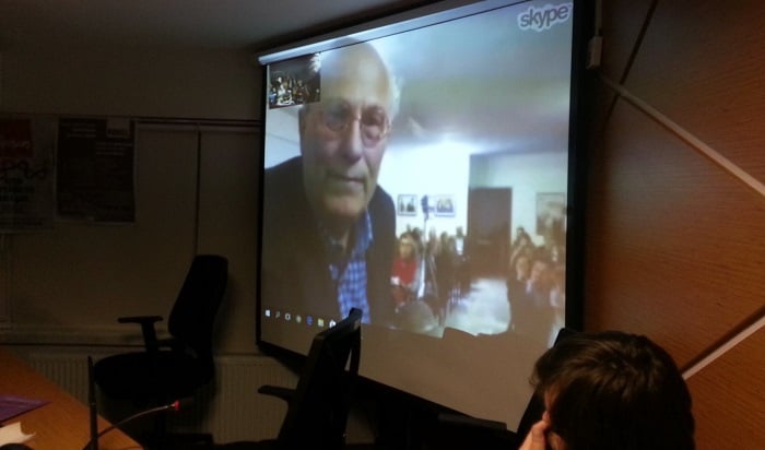 Историк Власис Агтзидис во время прямой видеосвязи