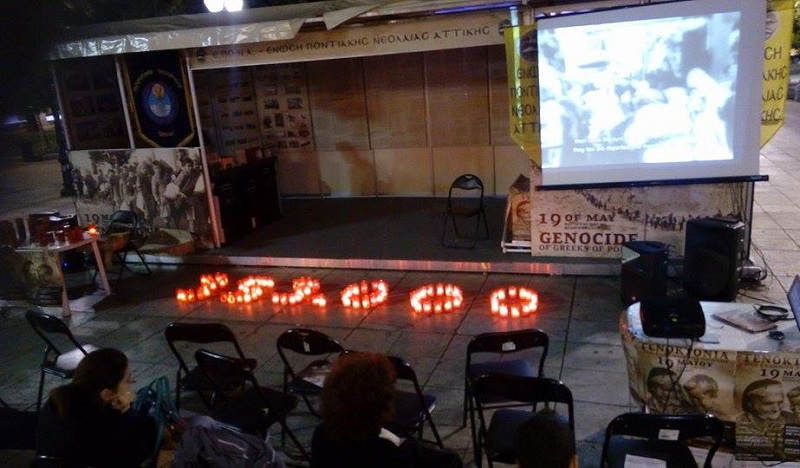 Οι νέοι της ΕΠΟΝΑ, όπως κάθε χρόνο, συγκεντρώθηκαν και φέτος στο περίπτερό τους στο Σύνταγμα για να «μονάσουν» τους νεκρούς, να μνημονεύσουν όσα πέρασαν, να σταθούν με δέος, με χαμηλωμένο βλέμμα εμπρός στα ταπεινά κεριά που σχηματίζουν τον φρικτό αριθμό των θυμάτων της Γενοκτονίας: 353.000.
