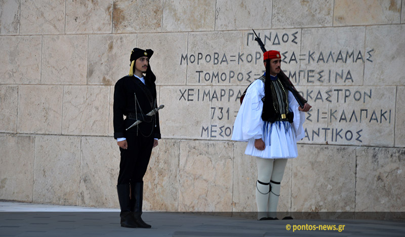Участники митинга на площади Синтагма в очередной раз встречали высоких, статных воинов и в форме Свободной «Старой» Эллады и Незабываемого Понта. Слезы радости были видны на глазах греков разных возрастов. С застывшим уверенным взглядом молодые эвзоны остановились после смены караула у могилы неизвестного солдата. Над вечным огнем на площади Синтагма изображен Древнегреческий воин, дающий пример мужества многим поколениям греков.
