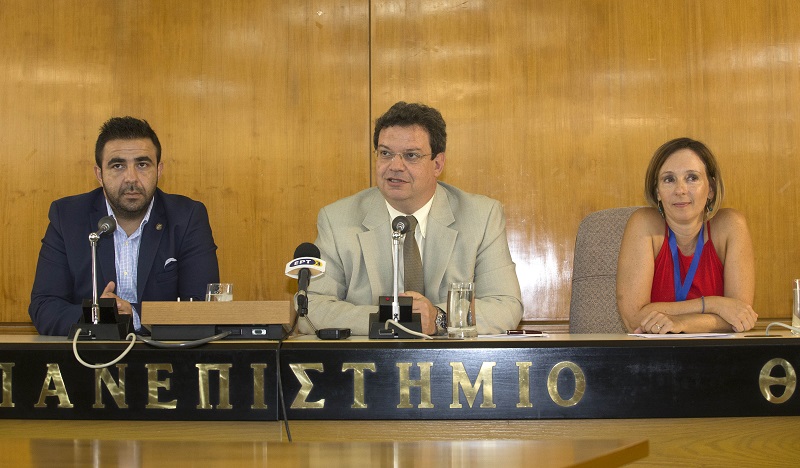 Ο πρόεδρος της ΠΑΣΕΠΟΝ Άλκης Αναστασιάδης, ο πρύτανης του ΑΠΘ Περικλής Μήτκας και η αν. καθηγήτρια