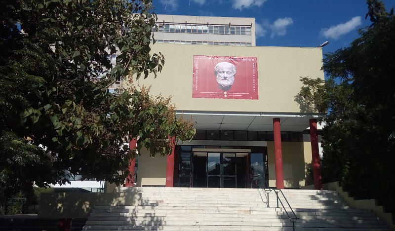 Πανό με την προτομή του μεγάλου Μακεδόνα φιλοσόφου, Αριστοτέλη του Σταγειρίτη, ανήρτησαν στις εισόδους τους σχολές του Αριστοτέλειου Πανεπιστημίου Θεσσαλονίκης.