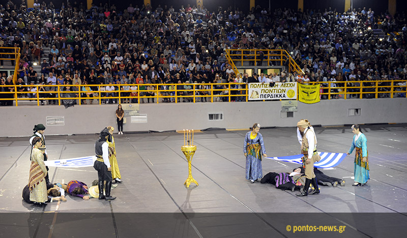 Ο παρουσιαστής και γνωστός Πόντιος τραγουδιστής Αχιλλέας Βασιλειάδης έδωσε το σύνθημα και το γήπεδο κατακλύστηκε από το νεανικό σφρίγος, από χιλιάδες χορευτές, που φορώντας τις πολύχρωμες φορεσιές τους κουνούσαν ρυθμικά τα πόδια και τα χέρια τους, αντλώντας δύναμη από την ψυχή τους και την αγάπη τους για τον Πόντο, την αλησμόνητη πατρίδα.