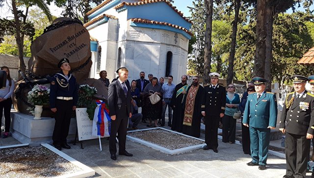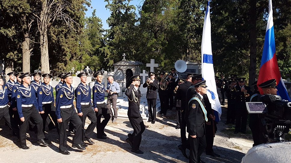 Матросы и офицеры сторожевого корабля “Сметливый”, сотрудники военного атташата и посольства России в Греции возложили венок и цветы к памятнику русским морякам на кладбище в Пирее, также в русском военно-морском некрополе прошел молебен.