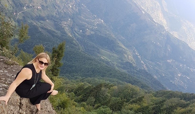 Η Αϊσέ Τουρσούν με φόντο τις Ποντικές Άλπεις