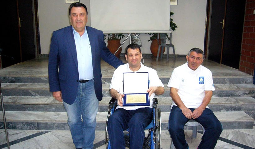 Η εκδήλωση ολοκληρώθηκε με τη βράβευση του Παραολυμπιονίκη από το δήμαρχο Κορδελιού-Ευόσμου Πέτρο Σούλα, ενώ τιμητική πλακέτα στον προπονητή του απένειμε ο αντιδήμαρχος Διοικητικών Υπηρεσιών, Διαφάνειας, Ηλεκτρονικής Διακυβέρνησης, Πολιτισμού και Αθλητισμού, Γεώργιος Χατζηβρέττας.