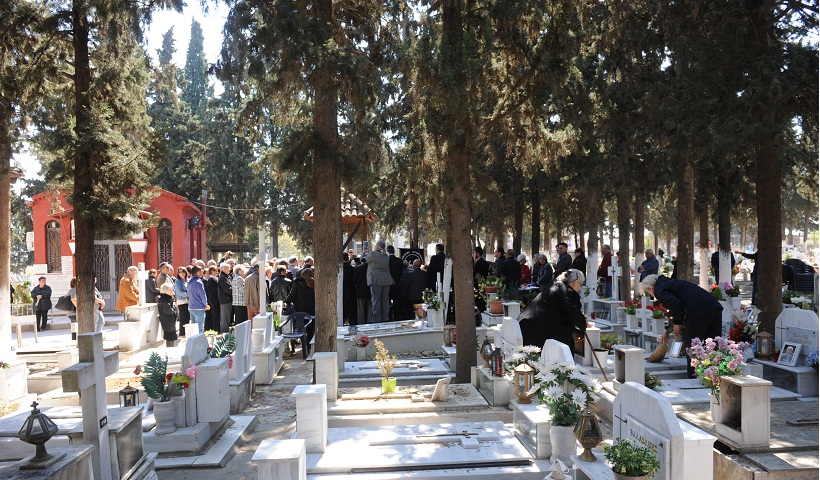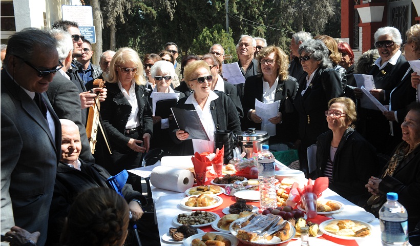 Ένα μεγάλο τραπέζι, με λιχουδιές της ποντιακής κουζίνας και διάφορα πασχαλινά εδέσματα, που ετοίμασαν οι γυναίκες-μέλη της Αδελφότητας, στήθηκε κάτω από τη σκιά των κυπαρισσιών στον κεντρικό διάδρομο του νεκροταφείου, μπροστά από την εκκλησία. Γύρω από αυτό δεκάδες άτομα –αφού τέλεσαν με την παρουσία ιερέα τρισάγιο για τις ψυχές των αποθανόντων– με τραγούδι, υπό τους ήχους της κεμεντζέ, «βροντοφώναξαν» ότι η μνήμη τους θα παραμείνει για πάντα ζωντανή.