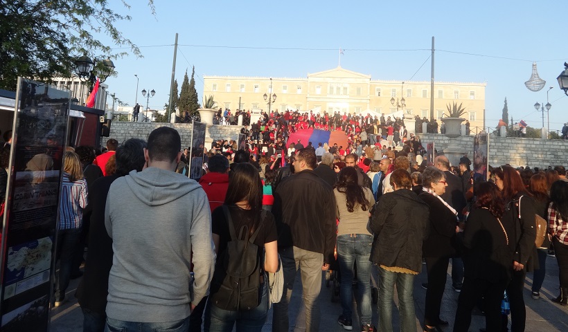 К 19:00 на площадь был вынесен огромный флаг Армении, который держали, расстянув горизонтально, армяне Афин, не забывающие события, приведшие к насильственной смерти около полутора миллиона их предков и к  насильственному исходу в другие страны мира.