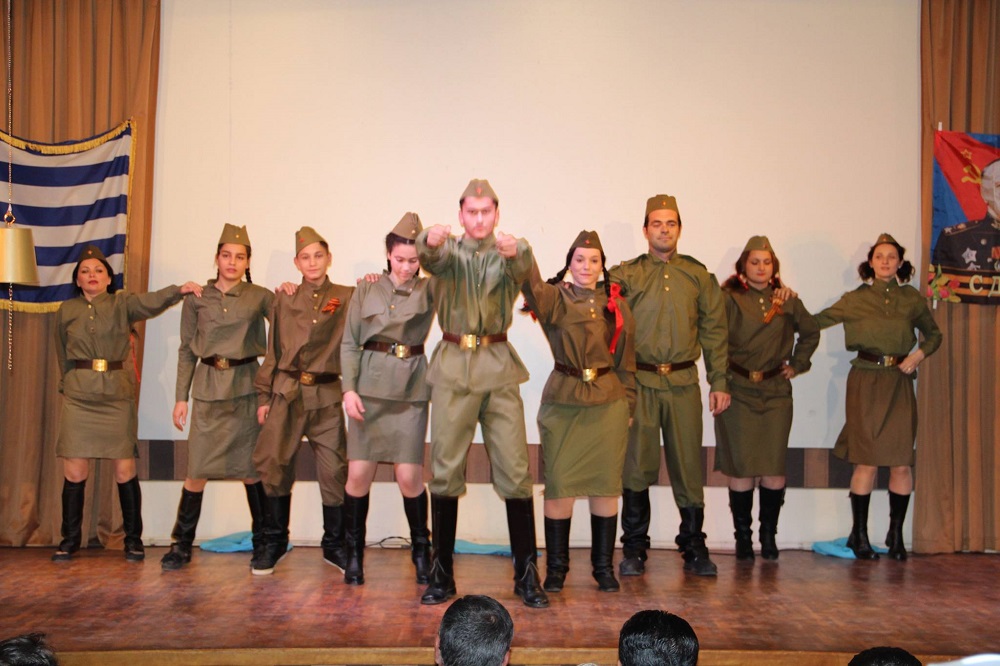 Очень дорого было присутствие людей, чье детство, молодость совпало со временем всенародного испытания, которые на своих плечах вынесли тяготы страшной войны,прошли огромный жизненный путь с радостями и удачами, потерями и невзгодами. Это Н.В. Толи, С.П. Герасимиду,А.Н. Зафериу, Е.К. Петриди,Е.М. Бутуриди, С.С. Катиду, Д. Захариас, С. Захариу,Н.Кирилидис. Специально для них прозвучала песня «С чего начинается Родина?»
