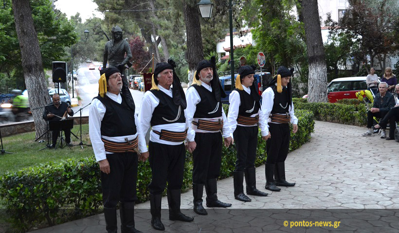 Στη συνέχεια η Χαρούλα Μιχαηλίδου κατέθεσε στεφάνι εκ μέρους του Συλλόγου στο άγαλμα του Πόντιου Ακρίτα και τηρήθηκε ενός λεπτού σιγή. Τρία τραγούδια αφιερωμένα στην ημέρα τραγούδησε ο Ηλίας Υφαντίδης με τη συνοδεία της χορωδίας του Συλλόγου, ενώ οι πυρριχιστές παρουσίασαν το χορό σέρρα.