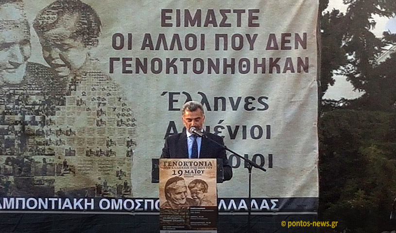 Από την πλευρά του ο πρόεδρος του ΣΠΟΣ Ν. Ελλάδος και Νήσων Γιώργος Βαρυθυμιάδης δήλωσε ότι «σήμερα 19η Μαΐου Ημέρα Μνήμης της Γενοκτονίας των Ποντίων τιμούμε τους προγόνους μας. Δίνουμε το παρών εδώ. Ανανεώνουμε κάθε χρόνο τον όρκο και θα συνεχίσουμε να το κάνουμε μέχρι να αναγνωριστεί διεθνώς η Γενοκτονία των Ποντίων.»