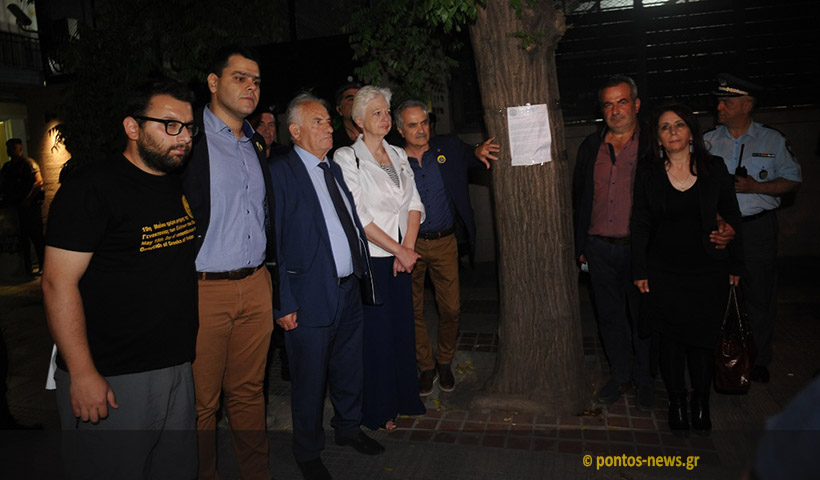 Δια μέσω των οδών Αγίας Σοφίας, Εγνατίας, Ιασωνίδου και Αγίου Δημητρίου, η πορεία προσέγγισε το τουρκικό προξενείο. Σε απόσταση περίπου 70-80 μέτρα από αυτό σταμάτησαν την πορεία κλούβες της αστυνομίας. Αντιπροσωπεία της ΠΟΕ πέρασε από το μπλόκο των αστυνομικών και κόλλησε το ψήφισμα σε γειτονικό δέντρο. «Το μήνυμα της πράξης αυτής είναι ότι η σύγχρονη Τουρκική Δημοκρατία φοβάται τόσο πολύ, που αρνείται να παραλάβει έστω κι ένα ψήφισμα», είπε στους παρευρισκόμενους ο Χρήστος Τοπαλίδης.