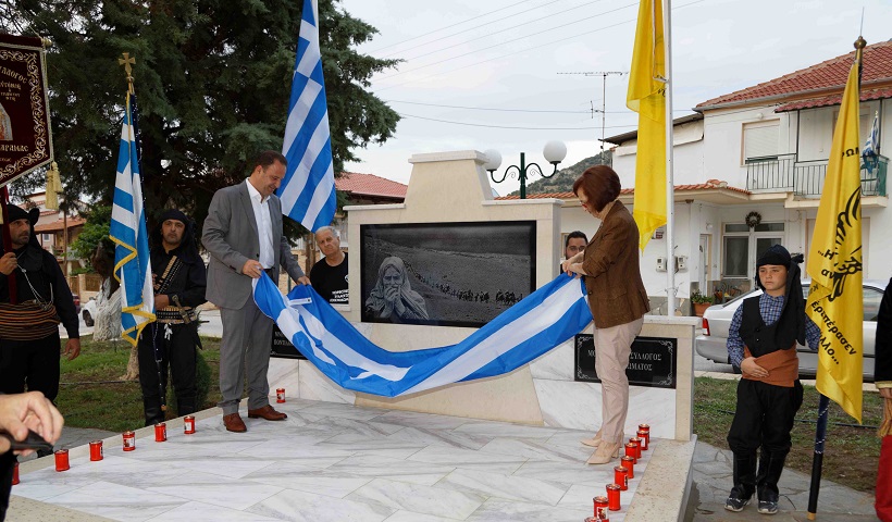 Τα αποκαλυπτήρια του μνημείου έκαναν ο δήμαρχος Παγγαίου και η πρόεδρος του Συλλόγου.