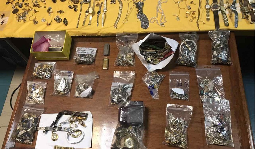 Επίσης, στο ίδιο όχημα βρέθηκαν πλήθος κοσμημάτων, το χρηματικό ποσό των 59.610 ευρώ, διάφορα άλλα τιμαλφή, ζυγαριά ακριβείας, πέντε κινητά τηλέφωνα και τρία σπρέι πιπεριού. Στη συνέχεια συνελήφθη η 40χρονη, ενώ σε αστυνομικές έρευνες σε σπίτια και καταστήματα, βρέθηκαν και κατασχέθηκαν, μεταξύ άλλων: δύο πλάκες χρυσού, βάρους περίπου ενός κιλού και αξίας 25.000 ευρώ, ασημένια εικόνα (αγαλματίδιο) της Παναγίας βάρος περίπου τριών κιλών, αξίας 3.000 ευρώ, πλάκα ασημιού βάρους περίπου 300 γραμμαρίων, πλήθος κοσμημάτων και ρολογιών, τέσσερα ειδικά φουρνάκια, στα οποία έλιωναν τα χρυσά κοσμήματα, πλήρης μονάδα φασματογράφου, με την οποία μετρούσαν την καθαρότητα λιωμένου χρυσού και δύο καλούπια μορφοποίησης λιωμένου χρυσού.