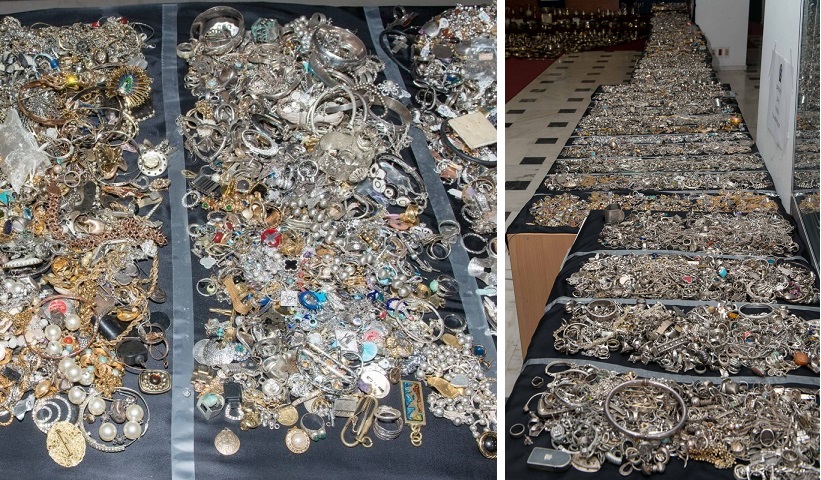 Σε τριώροφο στο Πάτημα Χαλανδρίου που συνδέεται με τον 43χρονο οι αστυνομικοί κατάσχεσαν 700 κιλά χρυσαφικά και κοσμήματα, πετράδια αξίας 500.000 ευρώ, 105.000 ευρώ σε μετρητά, επώνυμα ρολόγια μεγάλης αξίας, χρυσές λίρες, συλλεκτικά κοσμήματα, πλάκες καθαρού ασημιού, εικόνες. «Η αξία τους ξεπερνά τα 10 εκατ. ευρώ και προέρχονται από τη δράση του γνωστού εγκληματικού δικτύου», είπε κατά τη διάρκεια συνέντευξης Τύπου ο διοικητής της Διεύθυνσης Ασφάλειας Αττικής, υποστράτηγος Χρήστος Παπαζαφείρης.