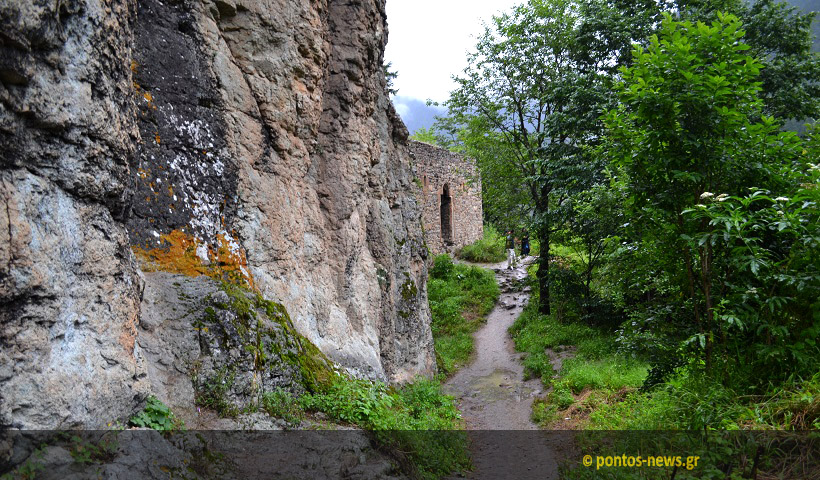 Η μονή της Παναγίας Σουμελά όπως φαίνεται από το παρεκκλήσι της Αγίας Βαρβάρας (φωτ.: Βασίλης Καρυοφυλλίδης)