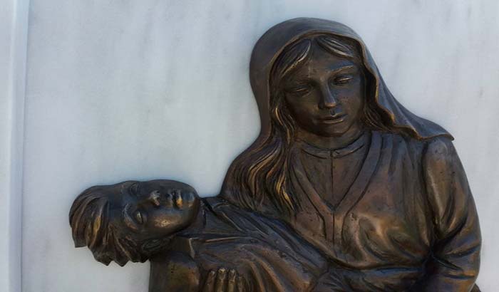 Μια Πόντια μάνα με ένα παιδί στην αγκαλιά, με αποτυπωμένη την απόγνωση και τη θλίψη στο πρόσωπό της απεικονίζει το νέο μνημείο (διά χειρός Γιώργου Κικώτη) που κοσμεί πλέον την πλατεία Αριστοτέλους στη Χρυσούπολη Καβάλας.