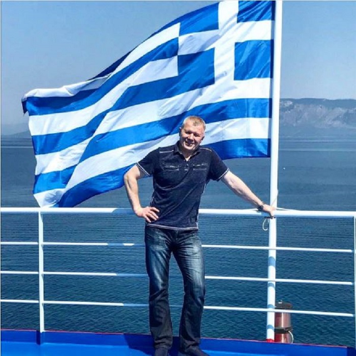 Με την ελληνική σημαία και φόντο το γαλάζιο της ελληνικής θάλασσας φωτογραφίζεται ο διάσημος Ρώσος κοσμοναύτης (φωτ.: novitskiy_iss / Instagram)