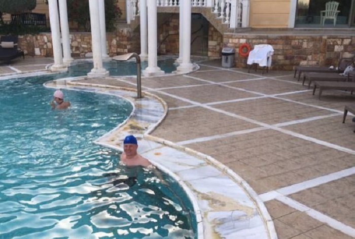 Ο Νοβίτσκι στην πισίνα του ξενοδοχείου που κάνει διακοπές στην Κρήτη (φωτ.: novitskiy_iss / Instagram)