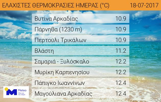 Σε Θεσσαλία, ανατολική Στερεά, Εύβοια και ανατολική Πελοπόννησο νεφώσεις τοπικά αυξημένες με τοπικές βροχές και τις πρωινές ώρες σποραδικές καταιγίδες οι οποίες στην ανατολική Θεσσαλία, την ανατολική Στερεά, την Εύβοια και τις Σποράδες πιθανόν να είναι κατά τόπους ισχυρές. Σταδιακή βελτίωση από το απόγευμα. Οι άνεμοι από βόρειες διευθύνσεις 4 με 6 και στα ανατολικά 6 με 7 μποφόρ. Η θερμοκρασία από 18 έως 28 βαθμούς Κελσίου. Στα βόρεια 2 με 3 βαθμούς χαμηλότερη.