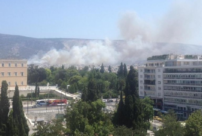 Οι δυνάμεις της Πυροσβεστικής στην Καισαριανή είναι ενισχυμένες καθώς η φωτιά είναι σε πλήρη εξέλιξη.