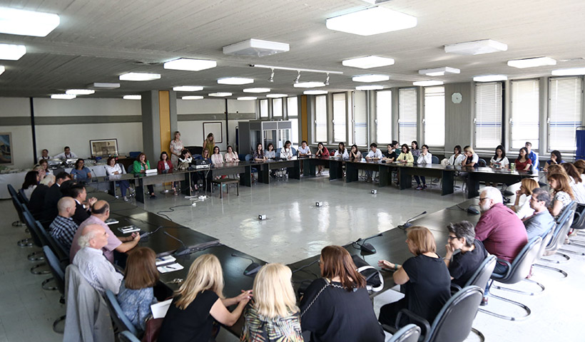 Η κοσμήτορας Ελ. Καραμαλέγκου μιλάει κατά την υποδοχή των Κινέζων φοιτητών (φωτ.: ΑΠΕ-ΜΠΕ / Θανάσης Καμβύσης)