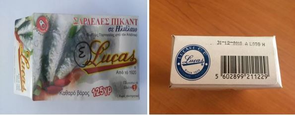Ο Ενιαίος Φορέας Ελέγχου Τροφίμων (ΕΦΕΤ) και συγκεκριμένα η Περιφερειακή Διεύθυνση Αττικής, κατά τη διενέργεια ελέγχων και σε συνεργασία με τη Χημική Υπηρεσία Πειραιά, διαπίστωσε ότι το προϊόν με την εμπορική επωνυμία «Lucas σαρδέλες πικάντικες σε ηλιέλαιο», προέλευσης Πορτογαλίας, καθαρού βάρους 125g, με ανάλωση κατά προτίμηση πριν από 31/12/2018 και αριθμό παρτίδας ΑL098H, το οποίο εισάγεται από την εταιρεία «Provinco AE» που βρίσκεται στη Ν. Κηφισιά, περιείχε την βιοτοξίνη ισταμίνη, σε τιμή που υπερέβαινε το ανώτατο όριο.