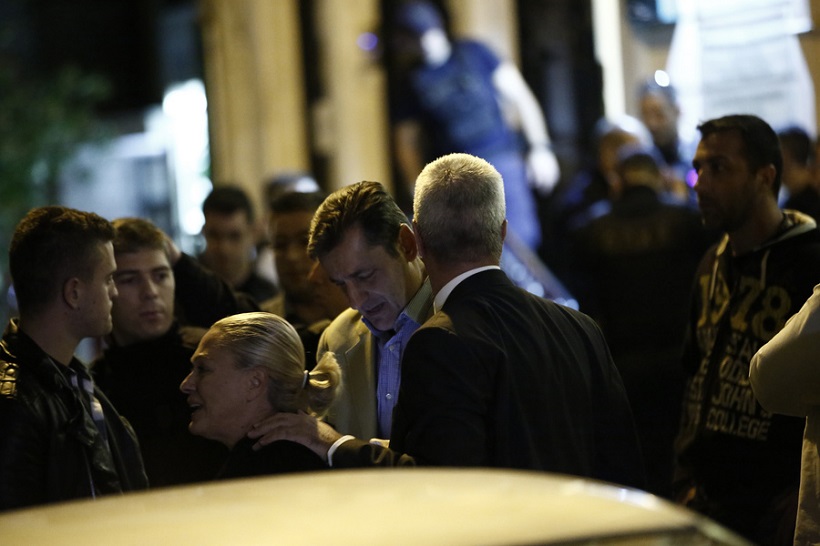 Συγγενείς και φίλοι έξω από το γραφείο του Μιχάλη Ζαφειρόπουλου δεν μπορούν να πιστέψουν τι συνέβη (φωτ.: ΑΠΕ-ΜΠΕ / Γιάννης Κολεσίδης)