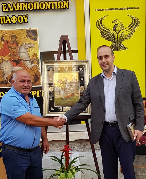 Σε χαιρετισμό του ο δήμαρχος Πάφου Φαίδωνας Φαίδωνος ανέφερε πως η επαρχία Πάφου εδώ και 25 χρόνια φιλοξενεί πέραν των 10.000 ομογενών Ποντίων, κυρίως από την περιοχή της Τσάλκας στην Γεωργία. Ο πρόεδρος της Ένωσης Ποντίων Αργυρούπολης Αττικής Ηλίας Ιορδανίδης προσέφερε στο Σύλλογο ένα πιστό αντίγραφο της εικόνας του Αγίου Γεωργίου και μια σειρά βιβλίων. Στο πλαίσιο της εκδήλωσης δόθηκαν τιμητικές πλακέτες.