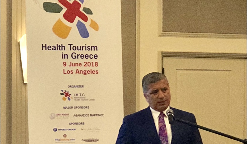 Με τη συμμετοχή κορυφαίων παραγόντων από το χώρο της υγείας, του τουρισμού και του επιχειρείν της Ελλάδας και της Αμερικής, πραγματοποιήθηκε χθες (9/6) ημερίδα για τον τουρισμό υγείας της χώρα μας. Η ημερίδα διοργανώθηκε από το Διεθνές Κέντρο Τουρισμού Υγείας και το Παγκόσμιο Ινστιτούτο Ελλήνων Γιατρών, υπό την αιγίδα του Ιατρικού Συλλόγου Αθηνών και της Κεντρικής Ένωσης Δήμων Ελλάδος, στο Huffington Center, στο Λός Άντζελες των ΗΠΑ.