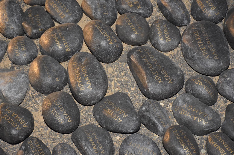 Οι ηφαιστειογενείς πέτρες με τα ονόματα των αγνοουμένων (φωτ.: ΑΠΕ ΜΠΕ / ΥΠΕΘΑ / ΔΝΣΗ ΕΝΗΜΕΡΩΣΗΣ/STR)