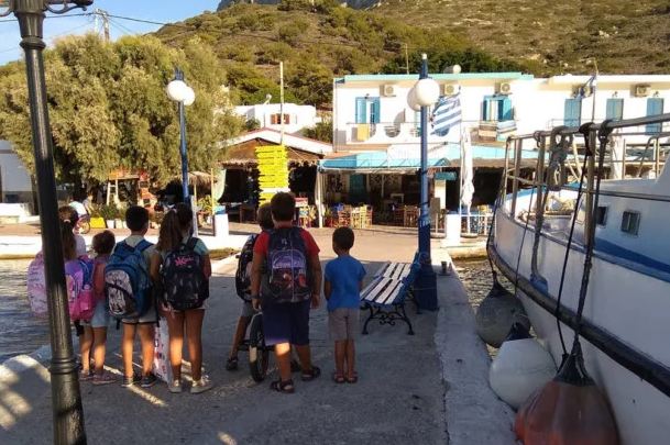 Πρώτα απ’ όλα είναι μονοθέσιο. Έχω τρεις τάξεις αυτήν τη στιγμή. Ένα παιδάκι στην πρώτη τάξη, δύο παιδάκια στην τρίτη τάξη και πέντε παιδάκια στην πέμπτη τάξη. Αυτό σημαίνει ότι πρέπει να βρω τις ισορροπίες ανάμεσα σε τρεις τάξεις. Πώς να τους κάνω το μάθημα, το χρόνο που θα αφιερώσω σε κάθε τάξη… Αυτό καλούμαι για πρώτη φορά να το αντιμετωπίσω και να το ισορροπήσω. Ακόμα πιο ιδιαίτερο είναι το γεγονός ότι από τον Οκτώβριο το σχολείο θα μείνει μόνο με δύο παιδάκια, γιατί τα υπόλοιπα θα πάνε σε σχολείο της Καλύμνου όταν θα ολοκληρωθεί η σεζόν, αφού οι γονείς τους θα κλείσουν τα καταστήματά τους εδώ και θα επιστρέψουν στην Κάλυμνο για το χειμώνα. Τα παιδάκια θα επιστρέψουν στο σχολείο της Τελένδου πάλι μετά το Πάσχα. Ουσιαστικά την σχολική χρονιά θα την βγάλουμε μαζί με δύο παιδιά της πέμπτης τάξης.