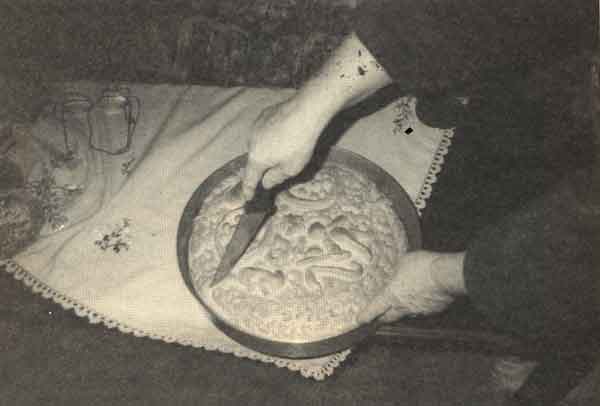 Πολλές γυναίκες μοίραζαν κομμάτια βασιλοκ’λούρας και τυριού στο εκκλησίασμα.