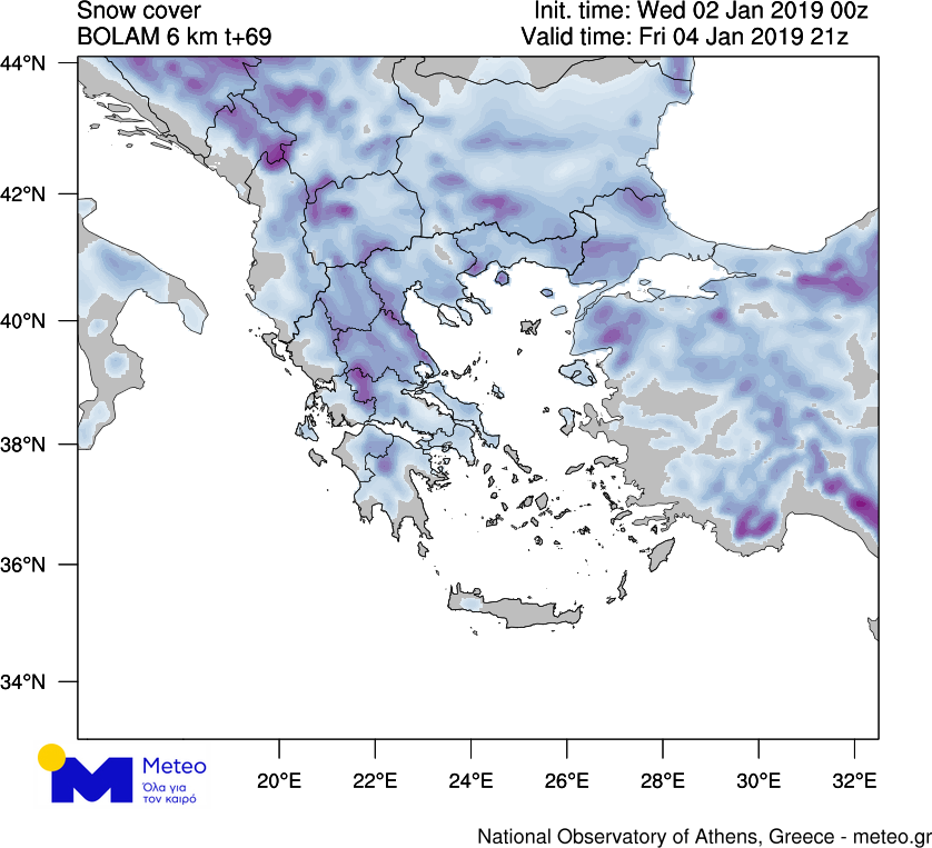 Η εκτιμώμενη χιονοκάλυψη έως τις βραδινές ώρες της Παρασκευής