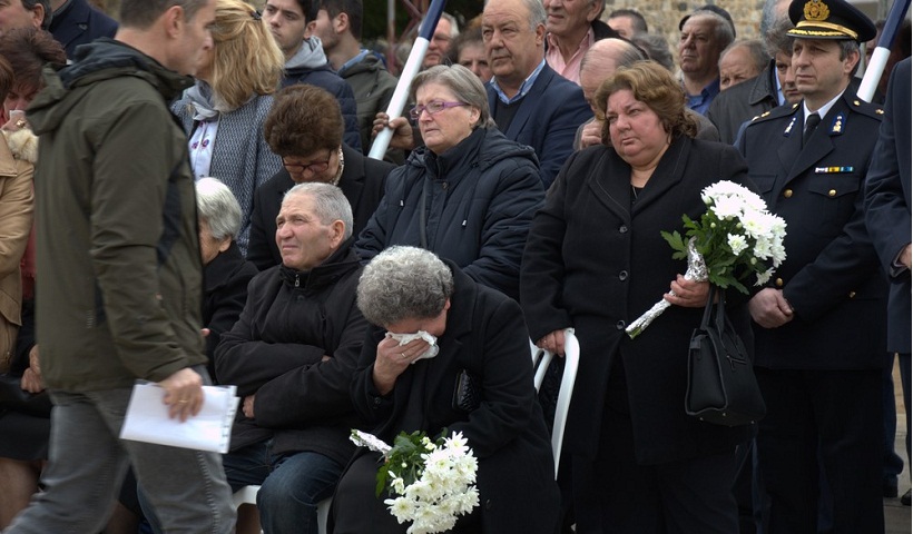 Ιδιαίτερα συγκινητική όμως ήταν η στιγμή που τα δυο αδέρφια του εθνομάρτυρα στρατιώτη, Στέλλα και Γιώργος, κατέθεσαν δακρυσμένοι ένα στεφάνι στο μνημείο.