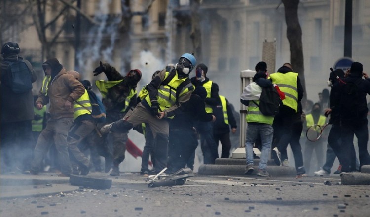 Τα πρώτα επεισόδια ξέσπασαν μεταξύ των διαδηλωτών των λεγόμενων «Κίτρινων γιλέκων» και αστυνομικών δυνάμεων στο Παρίσι, καθώς οι αντικυβερνητικές διαδηλώσεις συνεχίζονται για 13ο Σαββατοκύριακο, όπως αναφέρουν τα τοπικά ΜΜΕ.