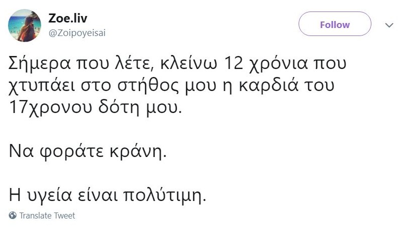 «Δεν υπάρχουν δίκαιοι θάνατοι, όμως αυτό της Ζωής είναι πέρα για πέρα άδικος. Η Ζωή ήταν ένα υπόδειγμα ήθους, καλλιέργειας, προσφοράς και δύναμης. Μετά τη μεταμόσχευση έφερε στη ζωή το πολύτιμο αγόρι της, τον Αργύρη (το όνομα του δότη), η πρώτη ελληνίδα που το τόλμησε. Αφιερώθηκε όσο λίγοι στη διάδοση της δωρεάς οργάνων, ήταν ιδρυτικό μέλος του συλλόγου μεταμοσχευμένων και μέχρι τέλους ήταν μέλος του ΔΣ της “Σκυτάλης”, του συλλόγου μας. Βρέθηκε σε όλες τις μάχες που δώσαμε, όλες τις εκδηλώσεις, ακόμα και όταν η κατάσταση της υγείας της δεν της το επέτρεπε», έγραψε στο Facebook ο καλός της φίλος Πέτρος Κακολύρης.