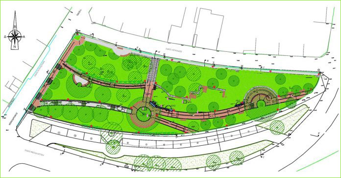 Σε ένα τμήμα του πάρκου θα τοποθετηθούν διάφορα μουσικά όργανα, τα οποία θα έχουν τη δυνατότητα να τα χρησιμοποιούν όχι μόνο οι κάτοικοι της περιοχής, αλλά και οι επισκέπτες – λάτρεις της μουσικής. Παράλληλα θα αναπλαστεί ευρύτερα το πάρκο. Θα διατηρηθούν τα υφιστάμενα δέντρα, θα εμπλουτιστεί η βλάστηση και θα δημιουργηθούν άξονες κίνησης για τους πεζούς, με προσβασιμότητα για όλους – ιδιαίτερα τους ηλικιωμένους και τα άτομα με ειδικές ανάγκες. Στο σχεδιασμό είναι η αντικατάσταση του ηλεκτροφωτισμού και η κατασκευή δύο γραμμικών στοιχείων νερού, όπου το νερό θα ρέει σε αυλάκι.