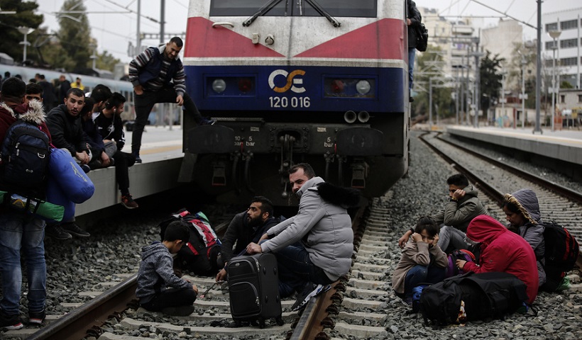 Πρόσφυγες και μετανάστες στις γραμμές του τρένου στο Σταθμό Λαρίσης (φωτ.: ΑΠΕ-ΜΠΕ / Γιάννης Κολεσίδης)