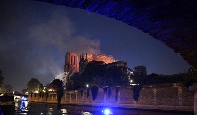 «Ω, Θεέ μου»… Κάποιοι κλαίνε, άλλοι προσεύχονται: εκατοντάδες τουρίστες και Παριζιάνοι, αποσβολωμένοι, σοκαρισμένοι, παρακολουθούν τις φλόγες να καταπίνουν την Παναγία των Παρισίων. Κραυγές κατάπληξης και λυγμοί ακούγονται από το πεζοδρόμιο, όταν το βέλος του καμπαναριού, του ιστορικού μνημείου, καταρρέει ενώ η φωτιά κατατρώει τον ξύλινο σκελετό του Καθεδρικού Ναού. Έχοντας σαστίσει, δείχνοντας να μην πιστεύουν τα μάτια τους, οι θεατές βιντεοσκοπούν την τραγωδία με τα κινητά τηλέφωνά τους.