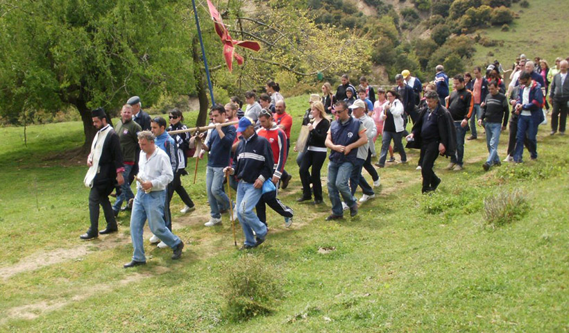 Εκεί τελούν αρτοκλασία και αγιασμό αναπέμποντας παρακλήσεις προς τον Αναστάντα Χριστό να ευλογήσει την καλλιεργητική περίοδο που ξεκινάει ώστε να είναι αποδοτική και εύφορη. Οι πιστοί προσκυνούν τα εικονίσματα και εν πομπή επιστρέφουν στην εκκλησία του Αγίου Ταξιάρχη. Στη συνέχεια, στην πλατεία του παλιού παραδοσιακού οικισμού στήνεται ένα μεγάλο γλέντι. Το χορό αρχίζει ο ιερέας και ακολουθούν οι κάτοικοι του χωριού που χορεύουν και τραγουδούν τρία συγκεκριμένα τραγούδια που διασώθηκαν με το πέρασμα των χρόνων. Η προσφορά σπιτικών φαγητών και γλυκών από τις γυναίκες του Πολιτιστικού Συλλόγου Ελευθερών ολοκληρώνουν την παραδοσιακή γιορτή που έχει τις ρίζες της στην Τουρκοκρατία και ακόμα παλιότερα.
