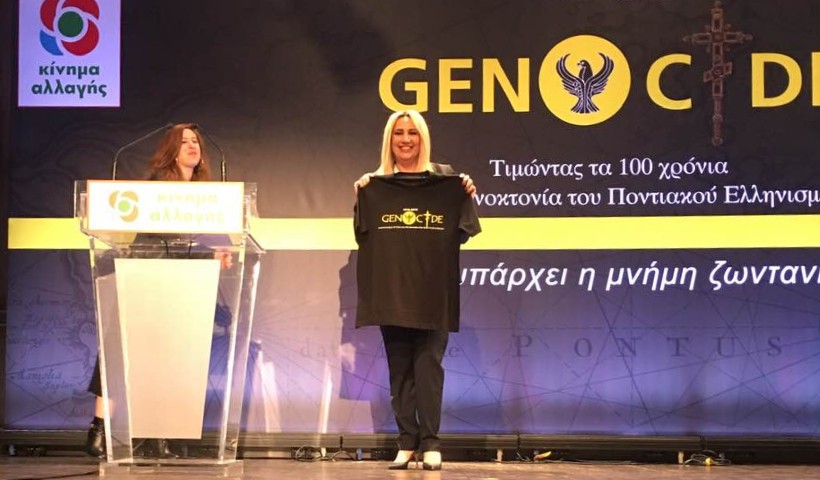 Τη δέσμευση ότι θα ασχοληθεί με την προώθηση του θέματος της αναγνώρισης της Γενοκτονίας των Ποντίων στο Ευρωπαϊκό Κοινοβούλιο, αλλά και ότι το αμέσως επόμενο διάστημα θα καταθέσει πρόταση για τη σύσταση μόνιμης διακομματικής επιτροπής της Βουλής για τη διεθνοποίηση του ζητήματος, ανέλαβε η Φώφη Γεννηματά. Η πρόεδρος του ΚΙΝΑΛ άνοιξε με την ομιλία της τη μεγάλη εκδήλωση που πραγματοποιήθηκε από το κόμμα την περασμένη Κυριακή με αφορμή τα 100 χρόνια από τη Γενοκτονία των Ποντίων.